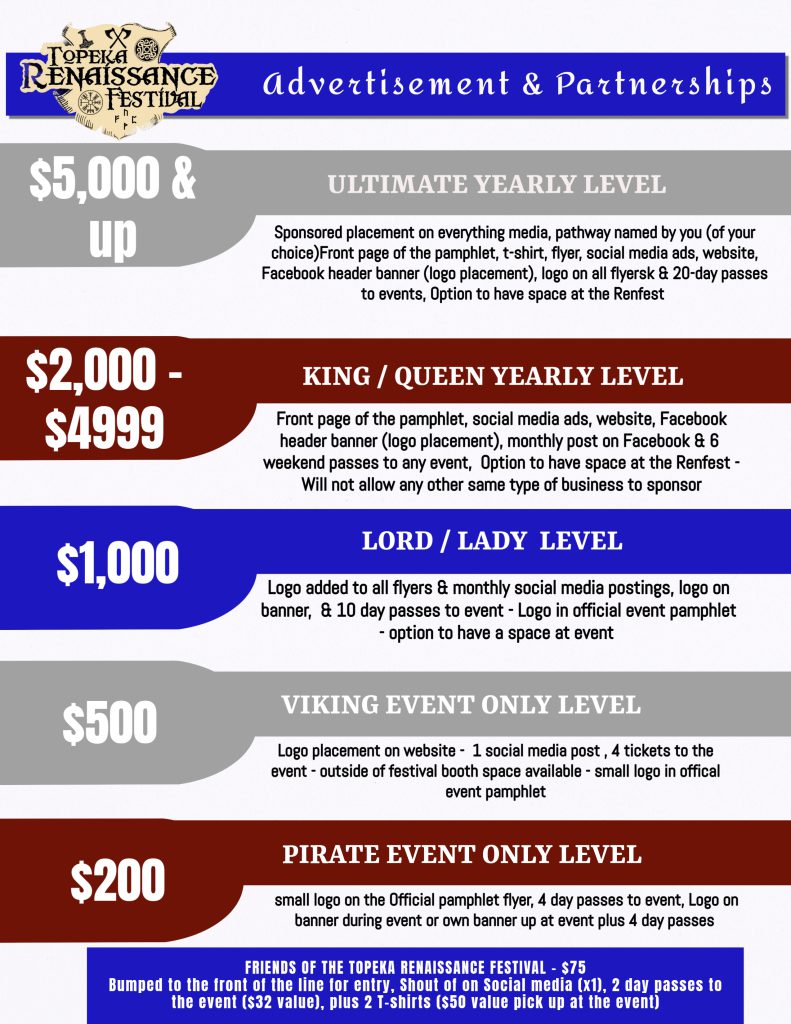 Wanting to become a sponsor of The Topeka Renaissance Festival?